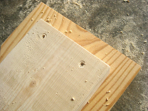 3. Pre-drill 2 holes on each end of the 24-inch pieces, about 3/4″ from the edge. This will position the screws to go into the center of the cut side of the 21-inch pieces.